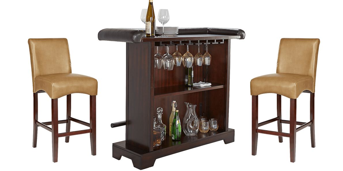 Galeno Cherry 3 Pc Bar Set With Tan Barstools Rooms To Go